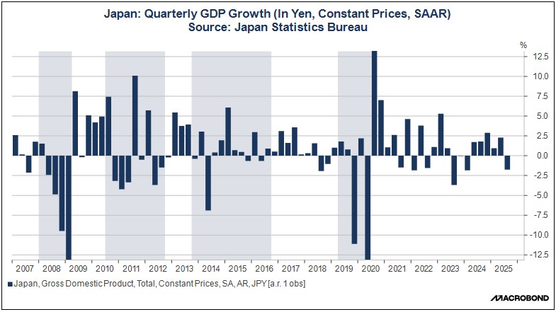 United States-Japan-Switzerland: Data yesterday showed Japanese gross domestic product declined at an annualized rate of 1.8% in the third quarter, reversing most of the growth in the first and second quarters of the year. Separately, Swiss GDP fell at a rate of 0.8% in the same period. In both cases, the main culprit for the declines was reduced exports to the US. The data illustrates how the US’s new, higher import tariffs are dragging on economic growth in key countries, which will likely be a headwind on their companies’ sales, profits, and stock prices.