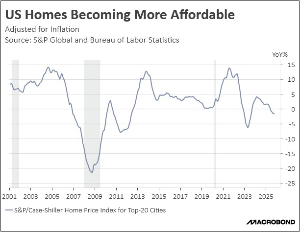 - The current disconnect in the housing market stems from the fact that recent interest rate declines have yet to reach a critical “tipping point.” As living costs rise and home prices continue to set new records, buyers have grown less sensitive to modest improvements in borrowing costs. To genuinely reinvigorate housing demand, a more substantial correction may be required, whether through a meaningful decrease in property values or a targeted stimulus to help buyers manage steep entry barriers.