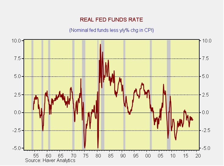 On the one hand, it’s hard to make the case that the FOMC is too tight. After all, real fed funds are still below zero.