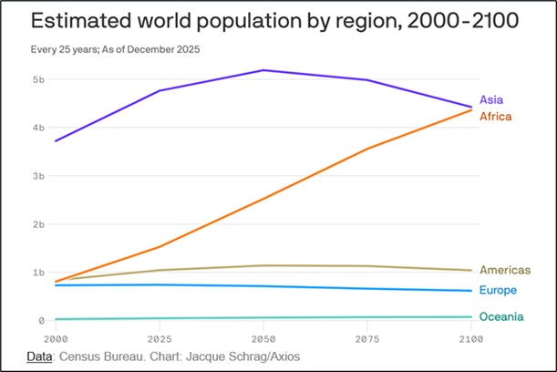 Global Demographics: New research by the Census Bureau finds that Africa’s continued high birth rates compared with other regions will make it the world’s demographic center of gravity by 2100, with several “mega-nations,” more geopolitical power, and potentially the fastest economic growth of all regions. Coupled with Africa’s valuable mineral resources, we think the continent’s population growth could also help make it a rising investment destination, especially if African nations can improve their political and economic institutions.