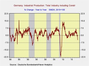 Weaker global economy: Car companies in Europe are announcing large job cuts.[8] German industrial production is flirting with recession-level weakness.