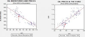 In terms of geopolitics, Iran is suggesting it might consider a swap of tankers with the U.K. It is not clear if the U.K. will agree to this because it creates a precedent of “tit-for-tat” that might be destabilizing. The U.S. said yesterday it would escort U.S. ships in the Persian Gulf seen as facing threats from Iran. We note that the U.S. and Europe have competing plans on protecting Gulf shipping; we suspect the U.S. plan will eventually win out. At this point, however, the markets have not built in any significant geopolitical risk. This is something of a surprise since tensions remain elevated and thus oil prices could jump significantly if an event occurs.