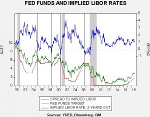 This rise in the implied LIBOR rate suggests a terminal rate closer to 3.25%. That would mean two more hikes this year and three next year.