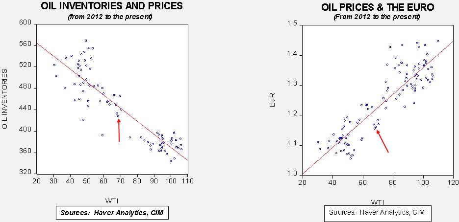As the seasonal chart below shows, inventories are near the end of their seasonal withdrawal period. This week’s decline was rather high. As we discussed in the recent Quarterly Energy Comment,[1] oil exports may change the seasonal pattern and lead to a less cyclical stock situation.