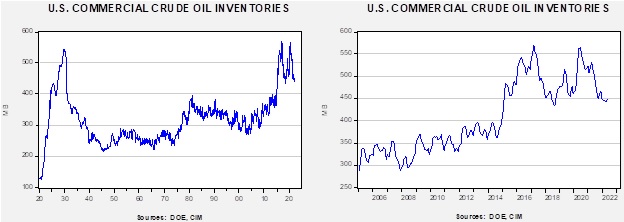 Since the SPR is being used, to some extent, as a buffer stock, we have constructed oil inventory charts incorporating both the SPR and commercial inventories.